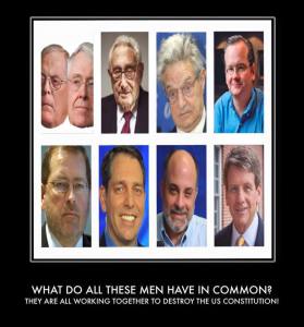 In the photos are: The Kochs, Kissinger, Soros, Lessig, Norquist, Meckler, Levine, Farris. They want our US Constitution changed!